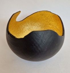 Ebonised Sycamore vessel with textured interior and gilded with 23ct gold leaf